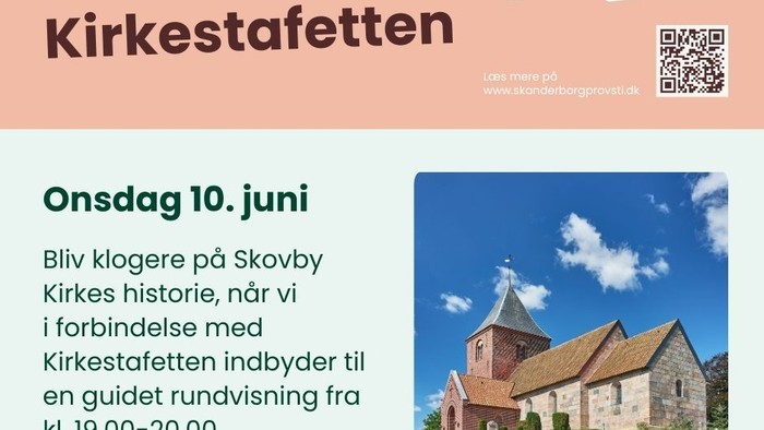 Bliv klogere på Skovby Kirkes historie, når vi i forbindelse med Kirkestafetten indbyder til en guidet rundvisning fra kl. 19.00 til 20.00.